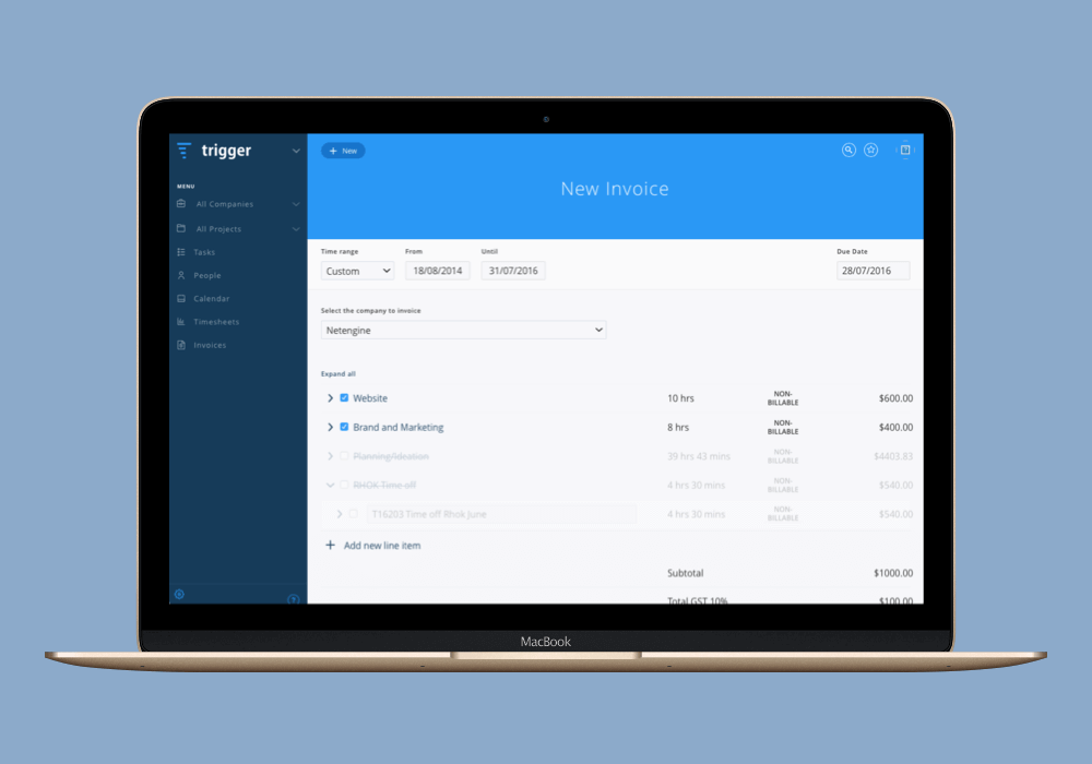 NetEngine built Trigger because we were sick of having to use multiple pieces of software for our project, client and team management, time tracking, invoicing and accounting.