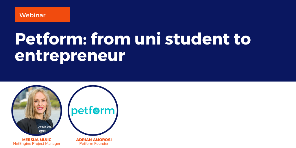 Enter your details below to access the webinar, where Petform founder Adrian Amorosi speaks with NetEngine Project Lead, Mersija Mujic, about the growth of his app, and how to get started in the tech world.